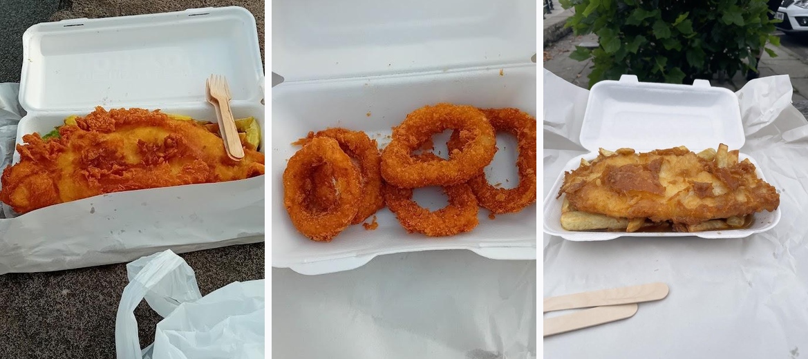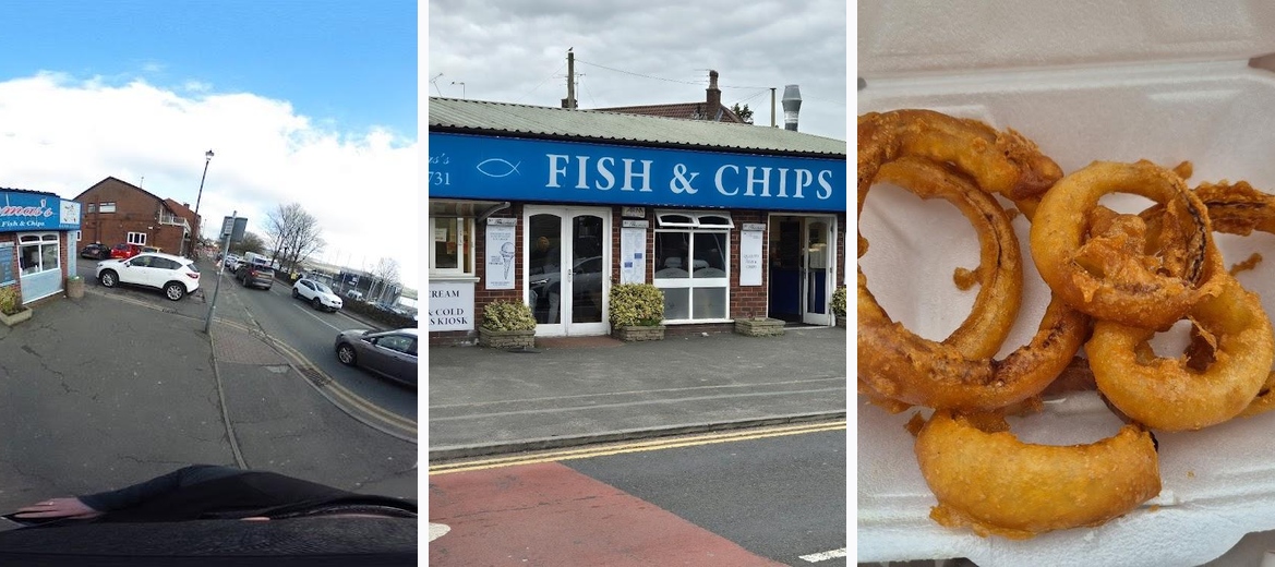 Clean fish and chip shop with a sit down restaurant and takeaway area. Ordered for takeaway. Staff were friendly, professional and polite. Onion rings were freshly made and deliciously crispy. The small chips and mushy peas were a bit squashed in the small container. Food was tasty.