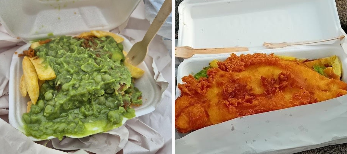 Mr Thomas's offers a variety of fish dishes, including Cod Fillet, Haddock Fillet, and combinations with peas or salad. It's a must-visit for fish lovers.