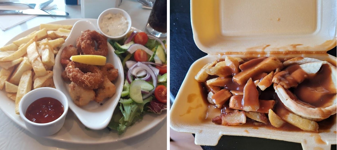 fish chips n gravy after a good walk up to and around the lake. views overlooking the lake eating our great tasting food.